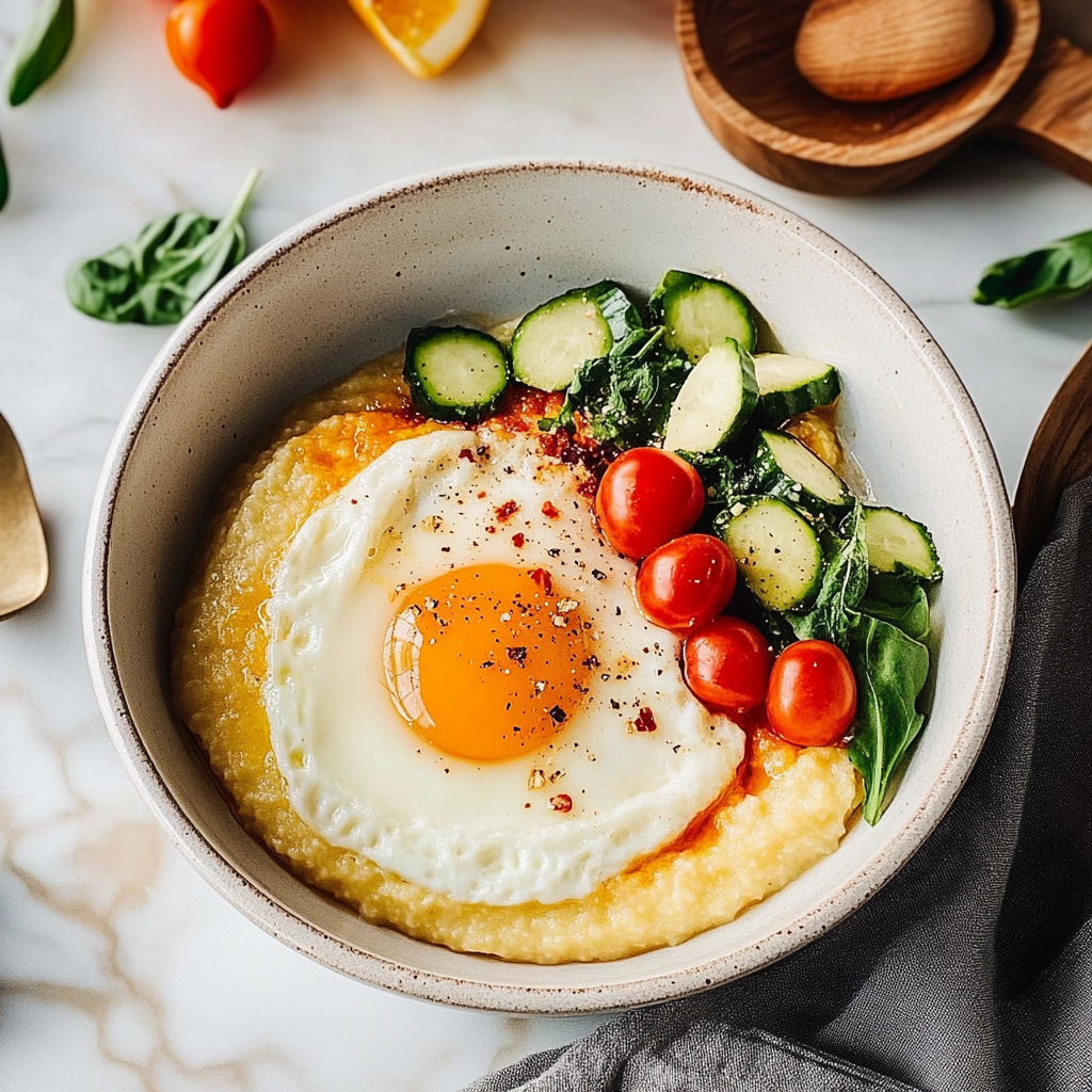 Indulge in Cheesy Grits with Fried Eggs & Veggies