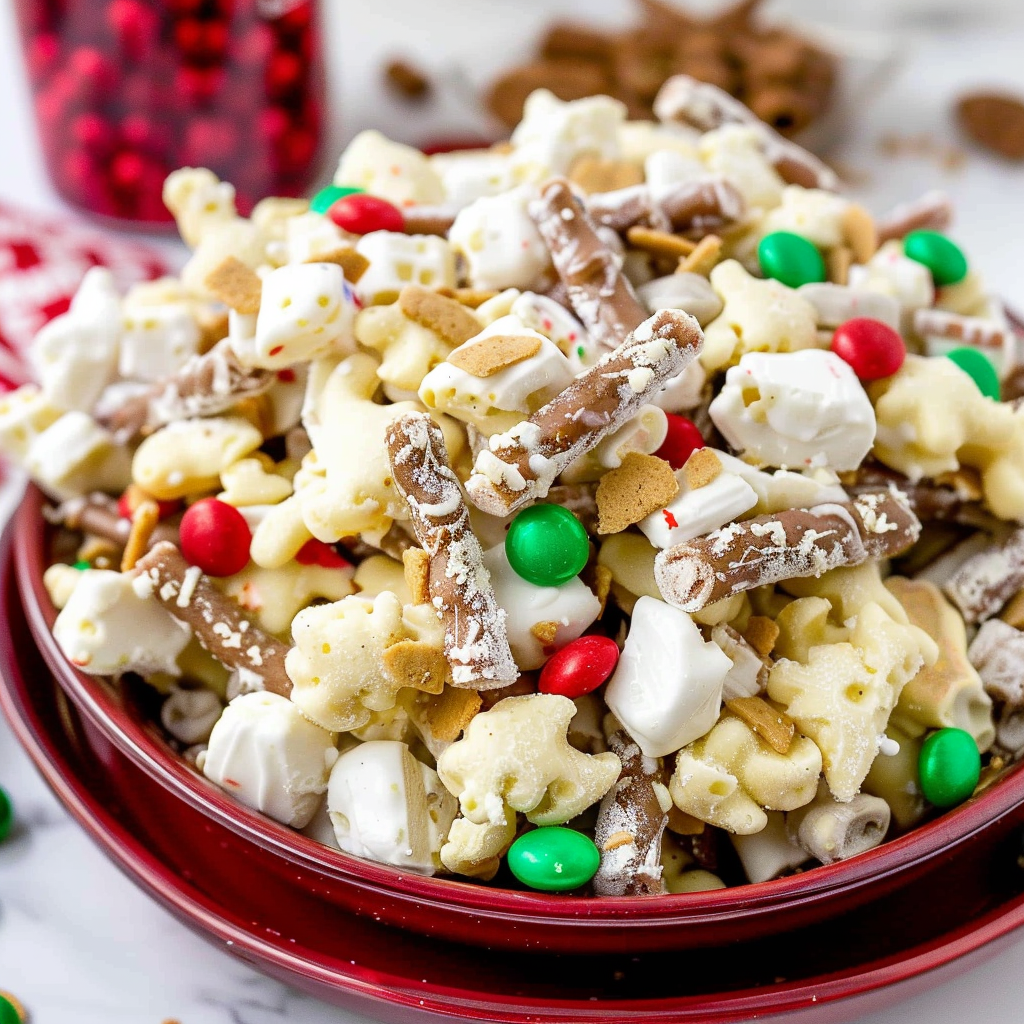 Irresistible Santa Snack Mix Marshmallow Bark Recipe