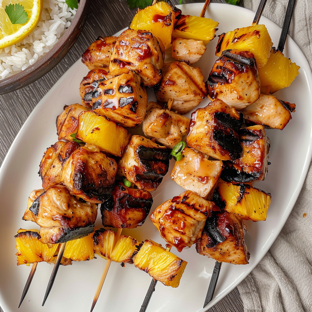 Savor Tropical Grilled BBQ Chicken & Pineapple Skewers