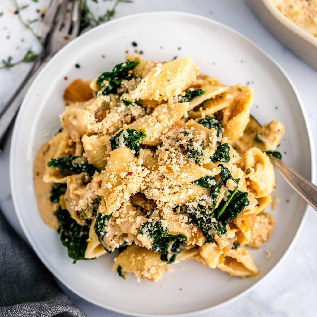 Creamy Caramelized Onion & Spinach Alfredo Bake Recipe