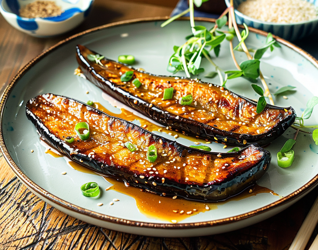 Miso Maple Glazed Eggplant “Steak” with Farro Delight