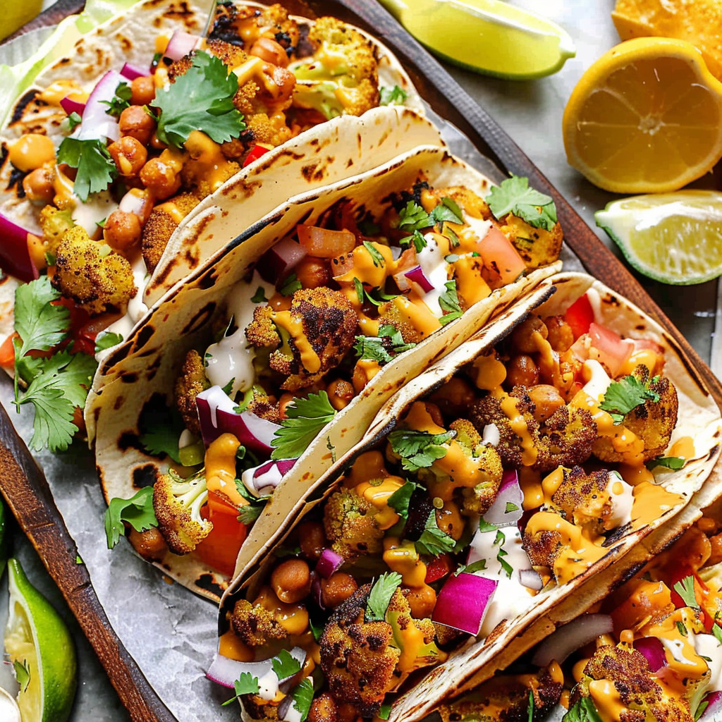 Flavor-Packed Buffalo Cauliflower & Chickpea Tacos Recipe