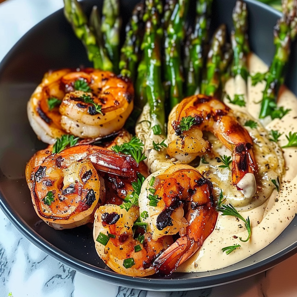 Tempting Grilled Shrimp Bowl with Asparagus & Garlic Sauce