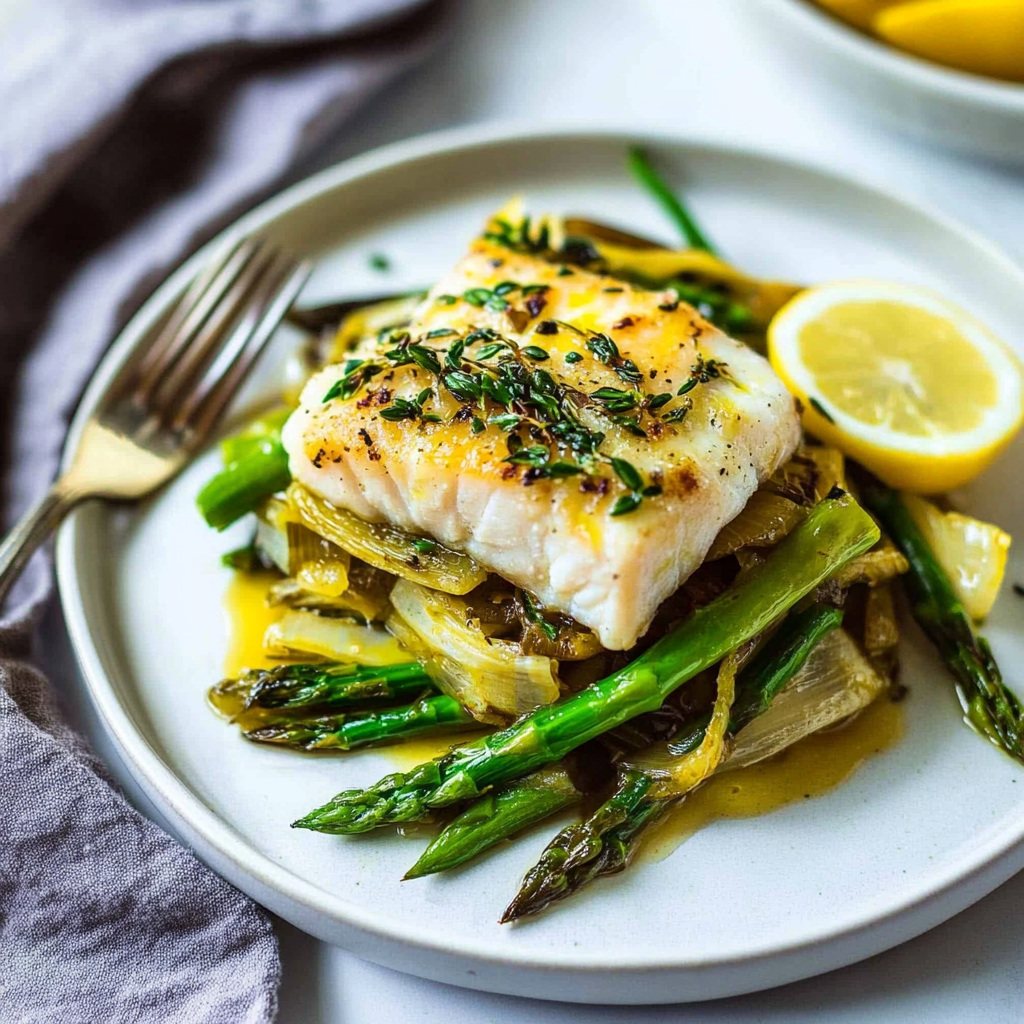 Delicious Baked Cod with Asparagus, Lemon & Leeks Recipe