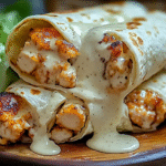 Cozy Cheesy Garlic Chicken Wraps are a delicious and satisfying meal made with tender chicken, melted cheese, and flavorful garlic, all wrapped in a soft tortilla. This dish combines the comfort of cheesy goodness with the savory taste of garlic, making it a favorite for families. You can customize the ingredients to suit your tastes, adding vegetables or spices for extra flavor. These wraps are perfect for lunch or dinner, and they also make excellent leftovers.