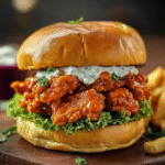 In summary, the Epic Buffalo Chicken Sandwich is a versatile dish that combines juicy chicken with zesty flavors. By using simple yet flavorful ingredients like hot sauce and ranch dressing, you can create this crowd-pleaser easily at home. Adjusting cooking methods and toppings allows for endless customization options to suit personal preferences. Whether you’re hosting a game day gathering or enjoying a cozy meal at home, this sandwich is sure to impress everyone at the table. Enjoy every spicy bite!