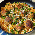 Mediterranean Chicken Meatballs and Orzo is a delicious dish that combines flavorful chicken meatballs with tender orzo pasta. The meatballs are typically seasoned with herbs like oregano, basil, and parsley, giving them a vibrant Mediterranean flavor. Paired with the small pasta, this dish creates a satisfying meal perfect for any occasion. You can customize it by adding vegetables or a light sauce for extra taste.