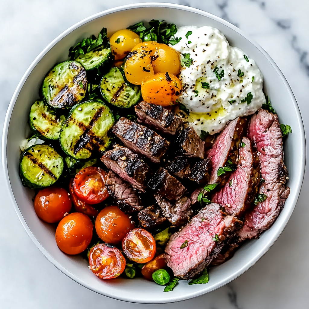 Dive into the vibrant flavors of this Mediterranean Steak Bowl, where marinated flank steak meets a medley of fresh vegetables and creamy feta. In just 30 minutes, you can create a colorful and satisfying meal that’s perfect for weeknight dinners or festive gatherings. Each bite promises an explosion of taste, bringing the essence of the Mediterranean right to your table.