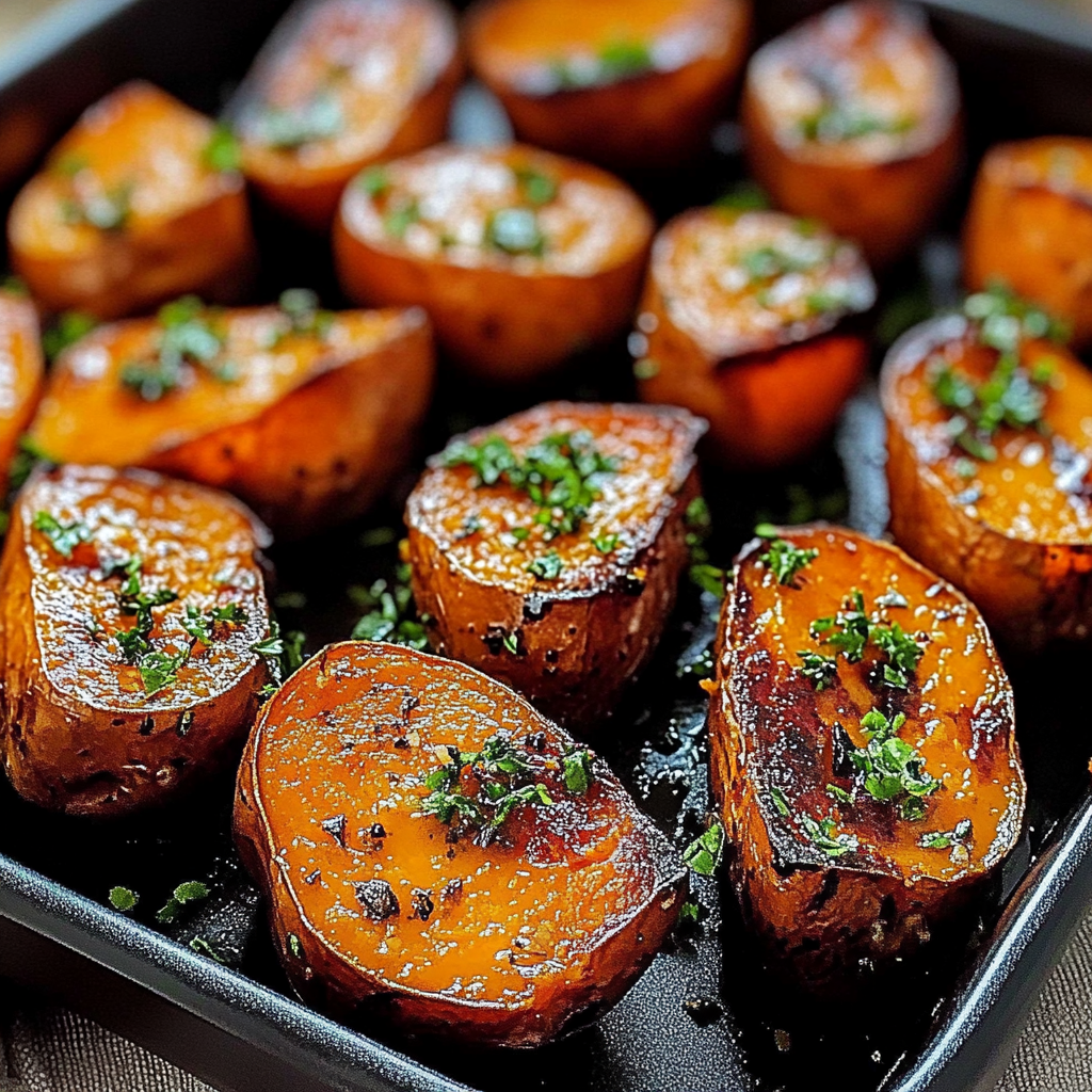 Garlic Butter Roasted Sweet Potatoes pair wonderfully with various main dishes. They complement roasted chicken or turkey beautifully due to their sweetness balancing savory flavors. Additionally, they work well alongside grilled fish or beef dishes, enhancing overall taste profiles. For a vegetarian option, serve them with quinoa salad or grilled vegetables to create a wholesome meal that satisfies diverse tastes.
