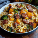 Autumn Sausage Pasta Squash is a heartwarming dish that brings together roasted butternut squash, savory Italian sausage, and penne pasta in a creamy sauce. Perfect for chilly evenings, this recipe showcases the flavors of fall, making it an ideal comfort food for family dinners or gatherings with friends. Enjoy this delightful blend of textures and tastes that will warm your soul and satisfy your cravings.