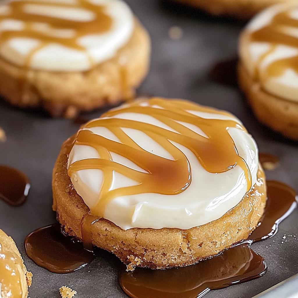 Start by making the cheesecake filling first, so it can chill while you prepare the cookie dough. Bake the cookies until golden, then let them cool slightly before adding that heavenly caramel drizzle on top.