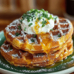 Cheddar Jalapeño Cornbread Waffles combine the savory flavors of cornbread with the kick of jalapeños and the richness of cheddar cheese. These waffles are a delightful twist on traditional cornbread, offering a crispy exterior and a fluffy interior. They make for a perfect breakfast option or a unique side dish for any meal. Enjoy them with butter, syrup, or even chili for a satisfying flavor experience.