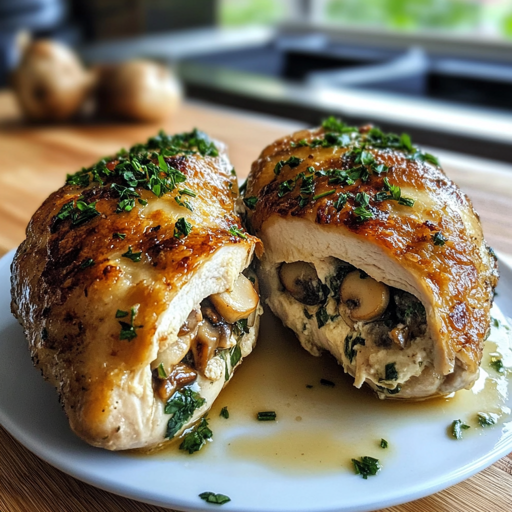 Cheesy Garlic Butter Mushroom Stuffed Chicken
