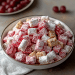 Cherry Cheesecake Puppy Chow is a delightful snack mix that combines crispy Chex cereal with a rich cherry cheesecake flavor. Coated in white chocolate and dusted with powdered sugar, this treat offers a perfect blend of sweetness and crunch. It’s easy to make and perfect for parties or as an afternoon snack. With its vibrant color and delicious taste, it becomes an instant favorite for both kids and adults alike.