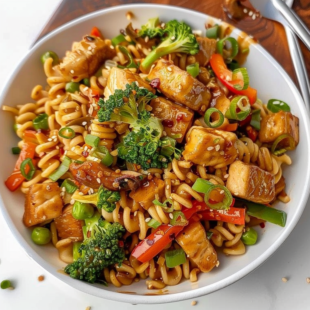 Absolutely! One of the best aspects of Chicken Ramen Stir Fry is its flexibility. You can swap out chicken for tofu or shrimp if you prefer a different protein. For vegetables, feel free to use whatever you have on hand or love most—zucchini, snap peas, or mushrooms work great. Adjust the sauce ingredients according to your taste; add more soy sauce for saltiness or chili paste for heat.