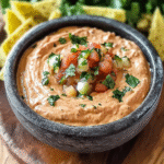 When you’re ready to serve, give it one last stir and transfer it to a fun serving bowl. Pair it with tortilla chips or fresh veggies for dipping.