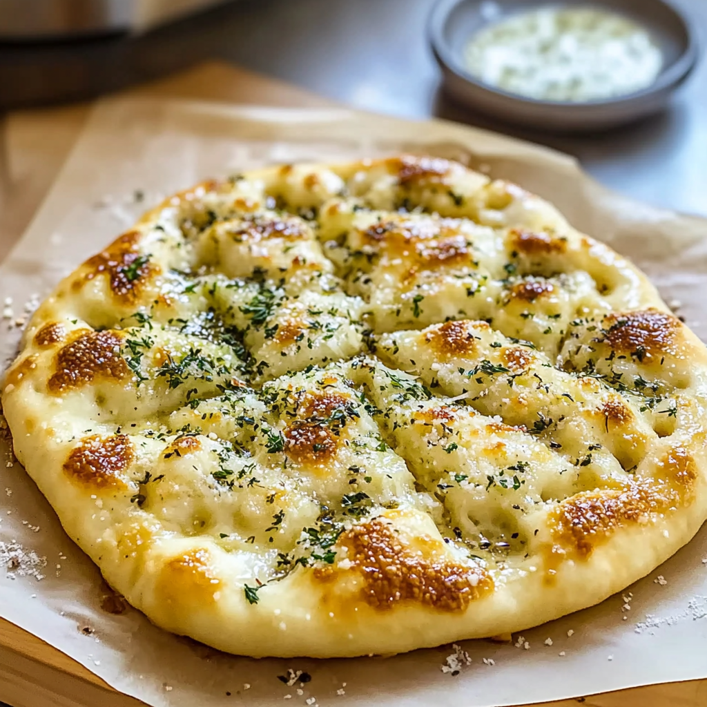 Garlic Parmesan Focaccia Bread is a delicious Italian-style bread known for its soft texture and rich flavor. It features the aromatic taste of garlic combined with the sharpness of Parmesan cheese. This bread is often topped with olive oil and herbs, making it a perfect accompaniment to soups, salads, or as a standalone snack. The dough is easy to prepare, requiring minimal ingredients, which makes it an ideal choice for both beginner and experienced bakers alike.