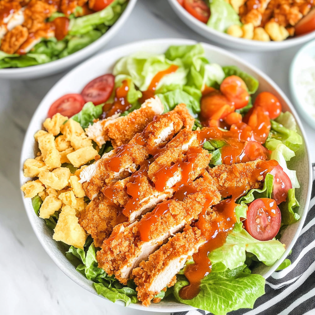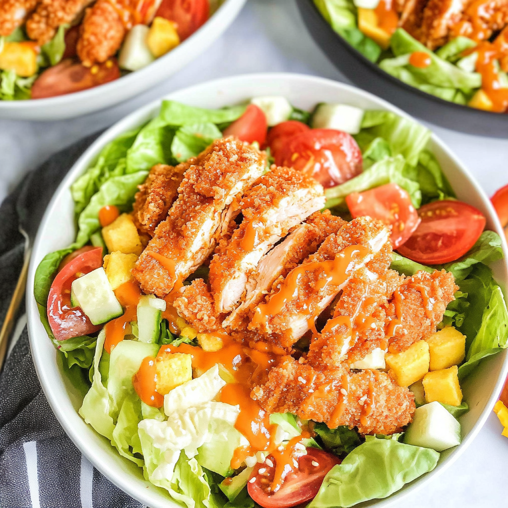 Store leftovers in an airtight container in the fridge for up to three days. To reheat, warm the chicken gently in a skillet to maintain its crispiness while enjoying the freshness of the salad without wilting.