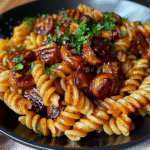 One-Skillet Spicy Honey BBQ Sausage & Pasta is a delightful dish that brings together bold flavors with minimal effort. With just a few simple ingredients and quick preparation time, it’s perfect for busy nights or casual gatherings. The combination of spicy sausage and sweet honey BBQ sauce creates a unique taste that everyone will love. Remember that you can easily customize this recipe to suit your preferences. Enjoy this satisfying meal and impress your family or guests with ease!