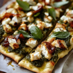Pesto Chicken Flatbread is a delicious and easy-to-make dish that combines tender chicken, vibrant pesto, and a crispy flatbread base. This recipe typically features grilled or roasted chicken topped with fresh basil pesto, mozzarella cheese, and various vegetables. It’s perfect for quick lunches, appetizers, or even a light dinner. The balance of flavors and textures makes it a favorite among food lovers.