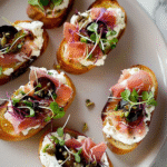 Prosciutto & Fig Crostini with Goat Cheese is a delightful appetizer that combines the savory flavor of prosciutto, the sweetness of figs, and the creamy texture of goat cheese. The dish typically features toasted bread topped with these ingredients, creating a perfect balance of flavors. It’s a popular choice for gatherings and parties due to its elegant presentation and delicious taste.