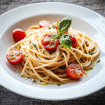 Indulge in the comforting flavors of Spaghetti with Olive Oil–Braised Tomatoes, a simple yet exquisite dish that captures the essence of Italian cuisine. This recipe features perfectly al dente spaghetti tossed with sweet, succulent cherry tomatoes and aromatic garlic, all brought together by high-quality extra virgin olive oil. A sprinkle of fresh basil adds a burst of freshness, making every bite a celebration of taste. Perfect for cozy dinners or casual gatherings, this dish is sure to impress!