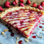 A Strawberry Pop Tart Slab Pie is a delicious dessert that combines the classic flavors of strawberry pop tarts with the convenience of a pie. It features a flaky, buttery crust filled with sweet strawberry jam and topped with icing. This large-format pie makes it easy to serve at gatherings or parties, providing a nostalgic twist to the beloved breakfast treat.