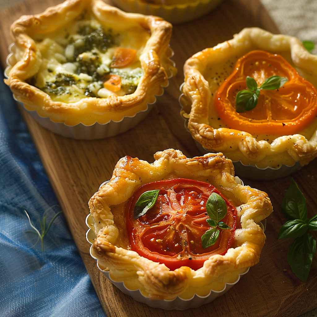 Keywords: Feel free to swap basil with fresh oregano or add crumbled feta for extra flavor. Leftover tartlets can be stored in an airtight container for up to three days and reheated at 350°F (175°C) for about 10 minutes.