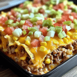 Walking Taco Casserole combines the fun of a walking taco with the comfort of a warm casserole. Imagine crispy tortilla chips mingling with seasoned beef, melty cheese, and fresh veggies, all baked together to create a delightful crunch with every bite. Your taste buds will dance like no one’s watching, and your kitchen will smell like a fiesta!