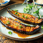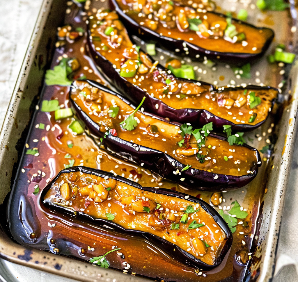 - Place the glazed eggplant on the baking sheet and bake for 25-30 minutes until golden brown and tender.