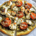 Grilled Pesto Pizza with Chicken and Cheese is a delightful culinary creation that transforms a simple pizza into a flavor-packed experience. With a golden-brown crust topped with juicy grilled chicken, vibrant cherry tomatoes, fresh basil, and zesty pesto, this dish is perfect for gatherings or cozy family nights. Easy to prepare, it promises to impress your guests and satisfy your cravings. Get ready to dive into a slice of pizza paradise!