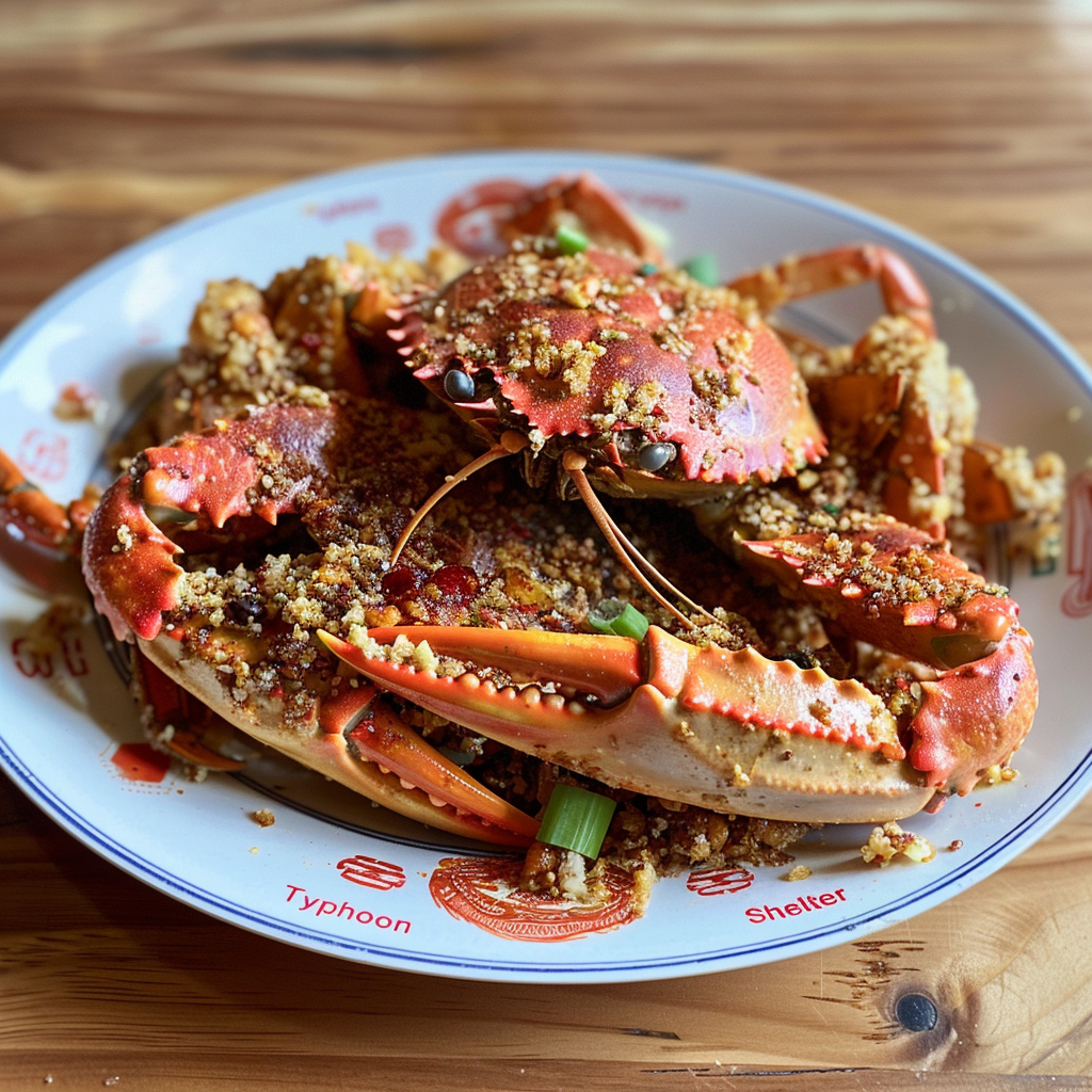 Hong Kong “Typhoon Shelter” Crab is a delicious seafood dish featuring crab cooked in aromatic garlic oil, seasoned with dried seafood and various spices. It’s a unique blend of flavors that captures the essence of coastal cuisine.
