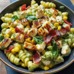 Chicken Corn Pasta Salad with Creamy Pesto and Bacon is a vibrant and delicious dish that captures the essence of summer in every bite. This colorful salad features tender chicken, sweet corn, crispy bacon, and creamy pesto, all tossed together with rotini pasta. Perfect for potlucks, picnics, or quick weeknight dinners, this recipe is easy to make and sure to impress your family and friends.