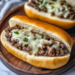Ground Beef Philly Cheesesteak is a deliciously indulgent sandwich that embodies the spirit of Philadelphia’s famous culinary scene. Featuring tender ground beef, sautéed onions and peppers, and gooey provolone cheese, all tucked into a soft hoagie roll, this recipe is perfect for game nights or satisfying late-night cravings. Easy to prepare and customizable, it brings friends and family together for a hearty meal that’s sure to impress.