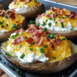 There’s something undeniably delightful about sinking your fork into a loaded baked potato, especially when it’s smothered in gooey cheese and crispy bacon. Picture this: the moment you cut through that perfectly baked, fluffy potato, steam wafts up, carrying with it the mouthwatering aroma of melted cheddar and savory bacon. It’s like a culinary hug that promises warmth and satisfaction.